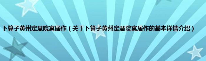 本文关于卜算子黄州定慧院寓居作的基本详情介绍就讲解完毕,希望对大家有所帮助。