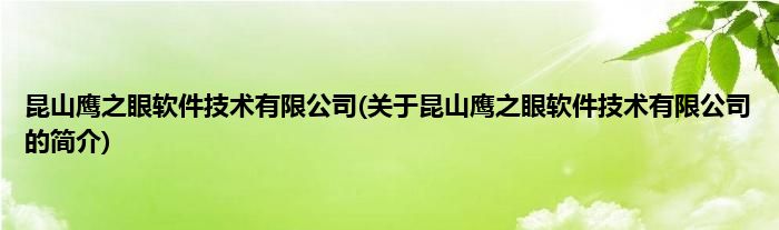 本文关于昆山鹰之眼软件技术有限公司的简介就讲解完毕,希望对大家有所帮助。