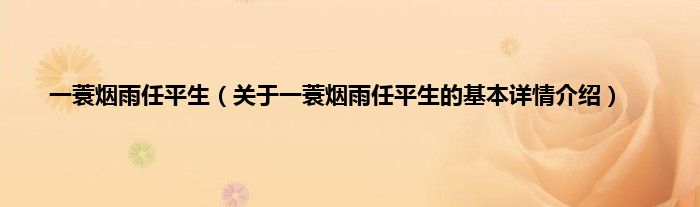 本文关于一蓑烟雨任平生的基本详情介绍就讲解完毕,希望对大家有所帮助。
