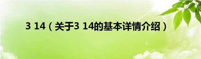 本文关于3 14的基本详情介绍就讲解完毕,希望对大家有所帮助。