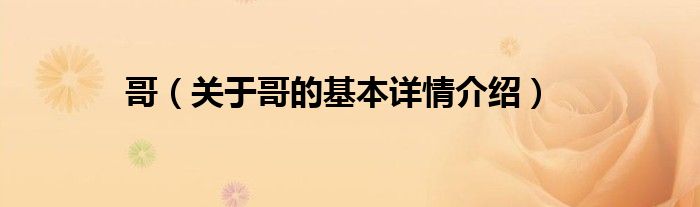 大家好我是小蝌蚪,哥,关于哥的基本详情介绍很多人还不知道,那么现在让我们一起来看看吧!