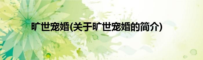 大家好,旷世宠婚,关于旷世宠婚的简介很多人还不知道,现在让我们一起来看看吧!