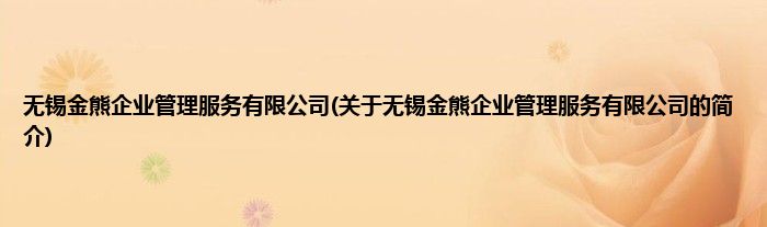 本文关于无锡金熊企业管理服务有限公司的简介就讲解完毕,希望对大家有所帮助。