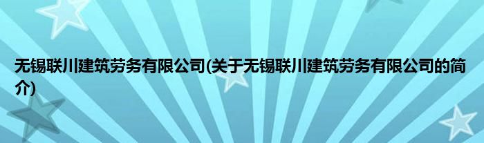 本文关于无锡联川建筑劳务有限公司的简介就讲解完毕,希望对大家有所帮助。