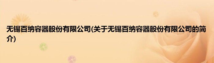 本文关于无锡百纳容器股份有限公司的简介就讲解完毕,希望对大家有所帮助。