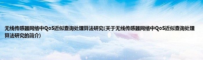 大家好,无线传感器网络中QoS近似查询处理算法研究,关于无线传感器网络中QoS近似查询处理算法研究的简介很多人还不知道,现在让我们一起来看看吧!