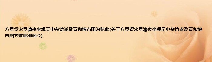 方景贤宋景濂夜坐观吴中杂诗遂及宣和博古图为赋此(关于方景贤宋景濂夜坐观吴中杂诗遂及宣和博古图为赋此的简介)