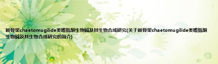 本文关于新骨架chaetomugilide类嗜氮酮生物碱及其生物合成研究的简介就讲解完毕,希望对大家有所帮助。