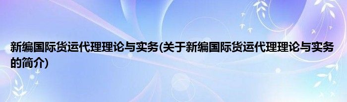 本文关于新编国际货运代理理论与实务的简介就讲解完毕,希望对大家有所帮助。