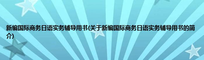 大家好,新编国际商务日语实务辅导用书,关于新编国际商务日语实务辅导用书的简介很多人还不知道,现在让我们一起来看看吧!