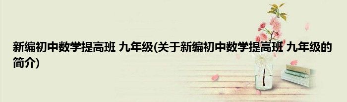 本文关于新编初中数学提高班 九年级的简介就讲解完毕,希望对大家有所帮助。