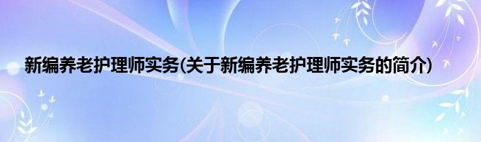本文关于新编养老护理师实务的简介就讲解完毕,希望对大家有所帮助。