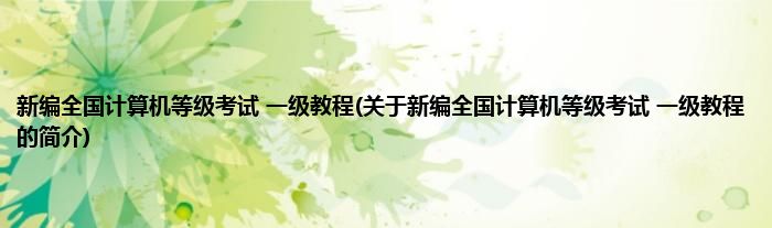 大家好,新编全国计算机等级考试 一级教程,关于新编全国计算机等级考试 一级教程的简介很多人还不知道,现在让我们一起来看看吧!