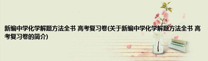大家好,新编中学化学解题方法全书 高考复习卷,关于新编中学化学解题方法全书 高考复习卷的简介很多人还不知道,现在让我们一起来看看吧!