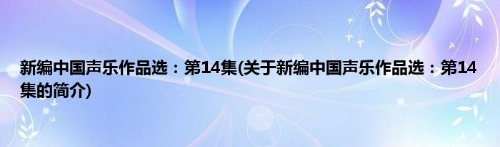 本文关于新编中国声乐作品选:第14集的简介就讲解完毕,希望对大家有所帮助。