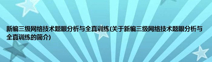大家好,新编三级网络技术题眼分析与全真训练,关于新编三级网络技术题眼分析与全真训练的简介很多人还不知道,现在让我们一起来看看吧!