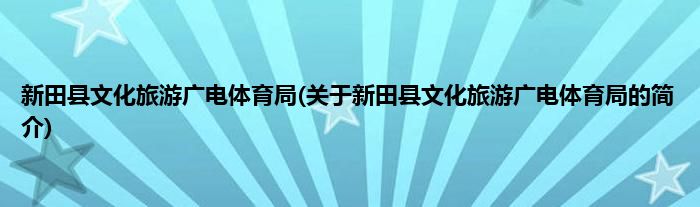 本文关于新田县文化旅游广电体育局的简介就讲解完毕,希望对大家有所帮助。