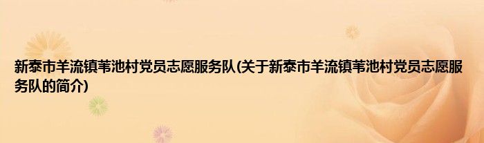 本文关于新泰市羊流镇苇池村党员志愿服务队的简介就讲解完毕,希望对大家有所帮助。