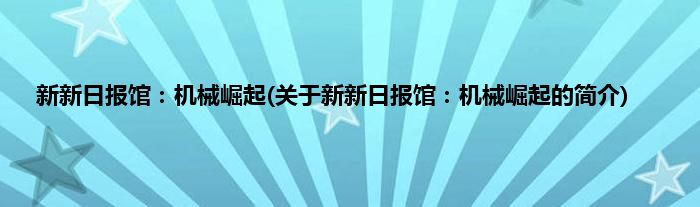 本文关于新新日报馆:机械崛起的简介就讲解完毕,希望对大家有所帮助。