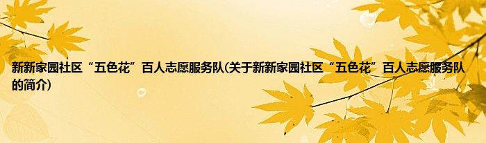 本文关于新新家园社区“五色花”百人志愿服务队的简介就讲解完毕,希望对大家有所帮助。