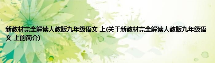 本文关于新教材完全解读人教版九年级语文 上的简介就讲解完毕,希望对大家有所帮助。