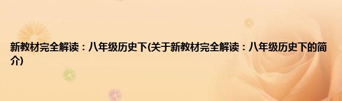 本文关于新教材完全解读:八年级历史下的简介就讲解完毕,希望对大家有所帮助。