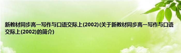 本文关于新教材同步高一写作与口语交际上(2002)的简介就讲解完毕,希望对大家有所帮助。