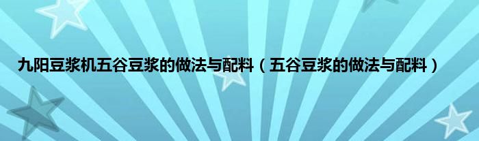 大家好,小科来为大家解答以上问题。九阳豆浆机五谷豆浆的做法与配料,五谷豆浆的做法与配料很多人还不知道,现在让我们一起来看看吧!