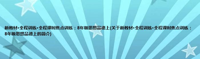 本文关于新教材·全程训练·全程课时焦点训练:8年级思想品德上的简介就讲解完毕,希望对大家有所帮助。
