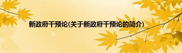 本文关于新政府干预论的简介就讲解完毕,希望对大家有所帮助。