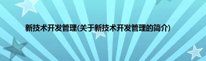 大家好,新技术开发管理,关于新技术开发管理的简介很多人还不知道,现在让我们一起来看看吧!