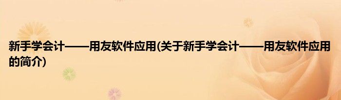 本文关于新手学会计——用友软件应用的简介就讲解完毕,希望对大家有所帮助。