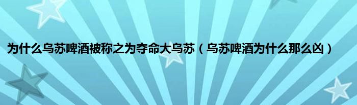 大家好,小科来为大家解答以上问题。为什么乌苏啤酒被称之为夺命大乌苏,乌苏啤酒为什么那么凶很多人还不知道,现在让我们一起来看看吧!