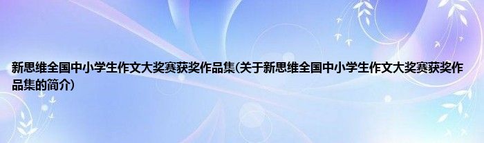 本文关于新思维全国中小学生作文大奖赛获奖作品集的简介就讲解完毕,希望对大家有所帮助。
