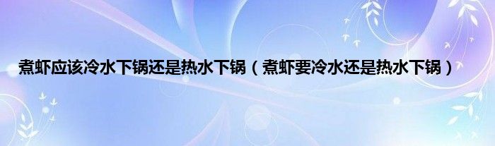 大家好,小科来为大家解答以上问题。煮虾应该冷水下锅还是热水下锅,煮虾要冷水还是热水下锅很多人还不知道,现在让我们一起来看看吧!