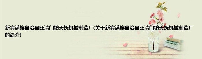 本文关于新宾满族自治县旺清门镇天抚机械制造厂的简介就讲解完毕,希望对大家有所帮助。