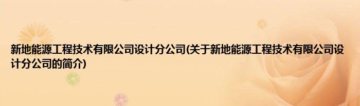 新地能源工程技术有限公司设计分公司(关于新地能源工程技术有限公司设计分公司的简介...