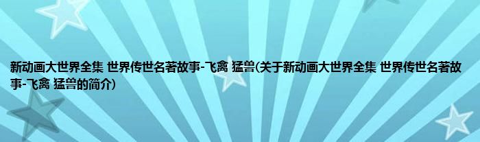 本文关于新动画大世界全集。世界传世名著故事-飞禽。猛兽的简介就讲解完毕,希望对大家有所帮助。