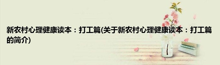大家好,新农村心理健康读本:打工篇,关于新农村心理健康读本:打工篇的简介很多人还不知道,现在让我们一起来看看吧!