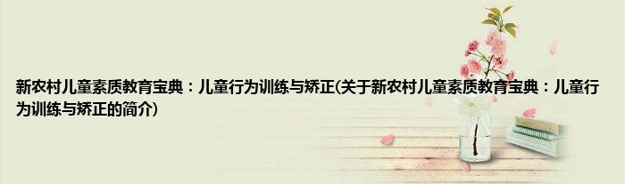 本文关于新农村儿童素质教育宝典:儿童行为训练与矫正的简介就讲解完毕,希望对大家有所帮助。