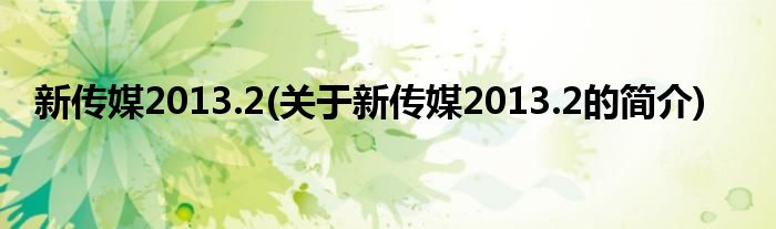 本文关于新传媒2013.2的简介就讲解完毕,希望对大家有所帮助。