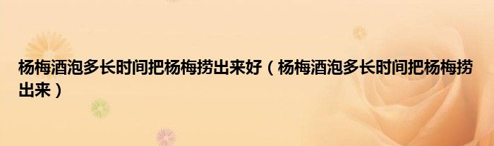 大家好,小科来为大家解答以上问题。杨梅酒泡多长时间把杨梅捞出来好,杨梅酒泡多长时间把杨梅捞出来很多人还不知道,现在让我们一起来看看吧!