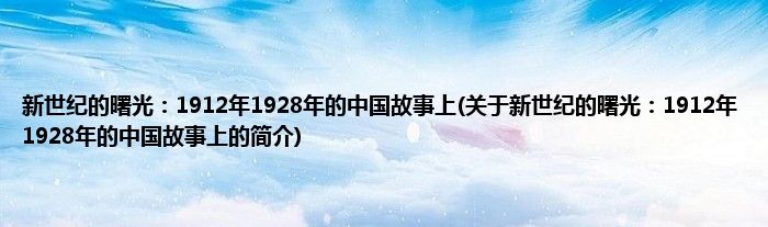 本文关于新世纪的曙光:1912年1928年的中国故事上的简介就讲解完毕,希望对大家有所帮助。