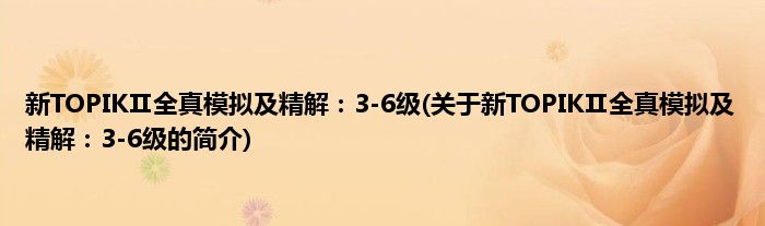 本文关于新TOPIKⅡ全真模拟及精解:3-6级的简介就讲解完毕,希望对大家有所帮助。