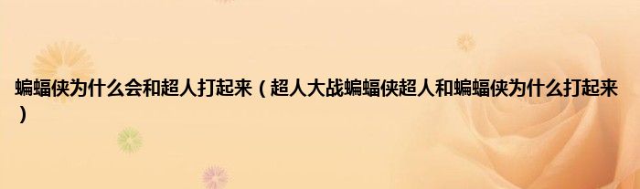 大家好,小常来为大家解答以上问题。蝙蝠侠为什么会和超人打起来,超人大战蝙蝠侠超人和蝙蝠侠为什么打起来很多人还不知道,现在让我们一起来看看吧!