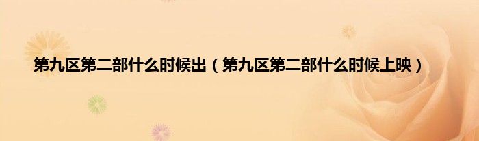 大家好,小常来为大家解答以上问题。第九区第二部什么时候出,第九区第二部什么时候上映很多人还不知道,现在让我们一起来看看吧!