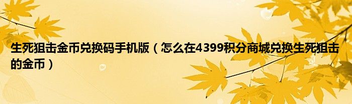 生死狙击金币兑换码手机版(怎么在4399积分商城兑换生死狙击的金币)