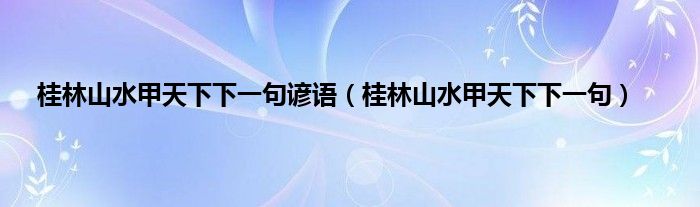 桂林山水甲天下下一句谚语(桂林山水甲天下下一句)