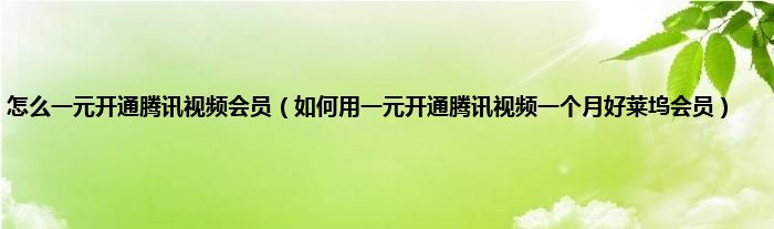 怎么一元开通腾讯视频会员(如何用一元开通腾讯视频一个月好莱坞会员)