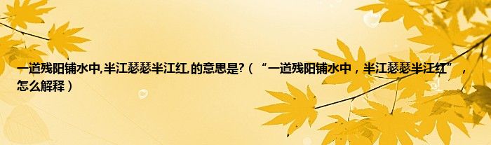 大家好,小常来为大家解答以上问题。一道残阳铺水中,半江瑟瑟半江红,的意思是?,“一道残阳铺水中,半江瑟瑟半江红”,怎么解释很多人还不知道,现在让我们一起来看看吧!